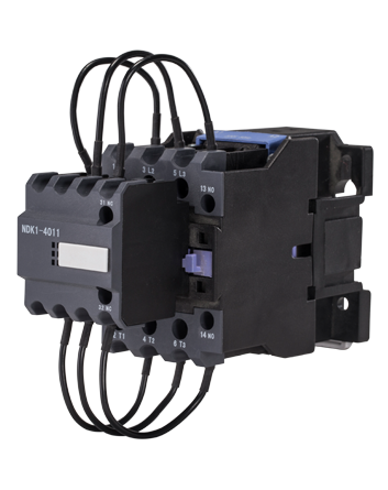 The NDK1 series of switching capacitor contactors (hereinafter referred to as contactors) have the AC 50Hz (or 60Hz) and the rated insulation voltage of 690V, and are applicable to the rated working voltage of 400V and the rated working current to 87A as well as the AC-6b utilization category, which are widely used in the low-voltage passive compensation equipment for connecting and breaking the capacitor bank. The contactors are provided with surge suppression devices, which can effectively reduce the impact of on-off inrush on the capacitor band and the overvoltage.