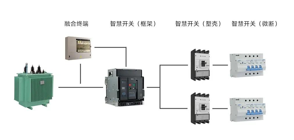 应用该系列智慧开关,良信电器以提升客户价值为出发点,设计出极简而全面的智能数字化配电系统解决方案,方案由融合终端、智慧框架断路器、智慧塑壳断路器、智慧微断共四部分组成,实现了电网系统全节点的数字化、智能化。
